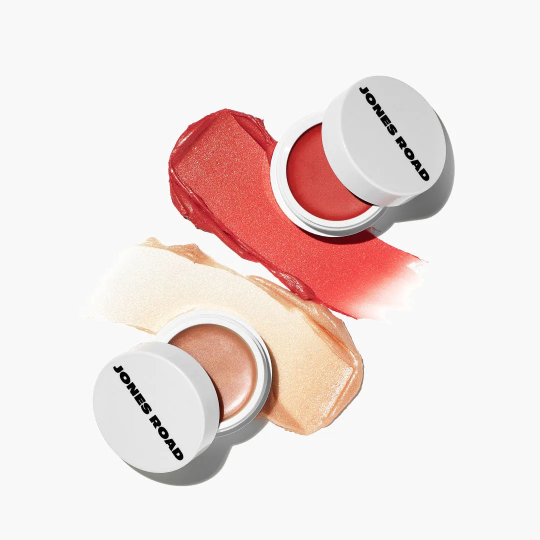 First, apply Mini Miracle Balm in Miami Beach to your cheeks and lips for moisture, color, and glow. Next, layer Mini Miracle Balm in Pink Champagne on your cheekbones and other high points of your face to add a shimmering highlight. Layer on 1-3 coats of The Mascara to your lashes for statement definition. Then finish with a touch of Cool Gloss in Pink Gold Shimmer for glossy lips.